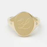 Inspired by the classic bold signet rings of the early 19th century, our Kazra Signet Ring is a beautiful bold piece that will complement your other rings perfectly and elevate your look. We set two genuine diamonds on each side and offer a complimentary engraving to make it one of a kind.