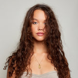 This pendant resembles an antique roman style of parchment, with the powerful engraving ..et Dieu créa la femme. “..and god created woman”, based on the Brigitte Bardot movie, where she is named Juliette. Inspired by the fierce beauty of Brigitte, but also signifying that women were created as a work of art. This necklace is a great layering piece for every day while being a classic and timeless heirloom.