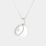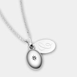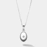 A nostalgic locket-style necklace that twists open to reveal a secret engraving of your choice. This vintage mirror-shaped pendant is adorned with a diamond on one side, and a simple polished surface on the other. Handcrafted especially for you and made with love, you can choose to engrave initials or a special date inside (not apparent when worn) or on the outside surface.