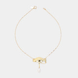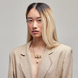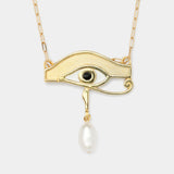 Inspired by the female goddesses from ancient Egypt, the Maryam necklace is a bold and unique piece. The golden handcrafted eye of Horus is carefully painted in resin and adorned with a tear of joy made from a naturally shaped freshwater pearl.
