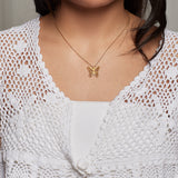 The Mirabal Butterfly Pendant is featured on our Dainty Diamond Cut Chain. This refined piece adds a subtle, elegant touch to any outfit. Wear it on its own for a simple, classic look or layer it with other jewelry for a more personalized style.