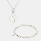 Medusa Necklace & Diamond Cut Bracelet Duo in Sterling Silver