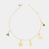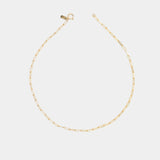 A chunky paperclip chain with an authentic, almost ancient feel; inspired by the fierce bejewelled goddesses of a mythical past. This chain works with or without charms. Wear it alone for a timeless look, or layered with other chains for a rich, bold feel.