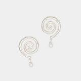 The Sacred Spiral is an ancient symbol of birth & rebirth. The earrings are a movement of personal power adorned with a pearl tear, which represents the beauty and strength of vulnerability. A bold and elegant addition to any outfit under the sun right into the night city lights.