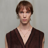 This necklace was inspired by Apollo, the God of Music. His harp was an important mythical instrument representing the love and importance of music. Layered with our classic Baby Zodiac pendant, this look is ready for a night under the stars.