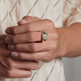 Named after our men’s jewelry designer, the Alexandre Signet Ring captures the essence of a timeless signet. This piece is sleek and elegant, with a hint of bold sophistication that makes it a true classic.