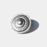 These handcrafted earrings are the perfect choice for a bold look, inspired by women in power suits from the 90s. Walk with a fierce step from daytime right into the night with these button-like studs.