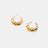 Ces créoles épaisses et audacieuses sont inspirées par les années 60 au large des côtes italiennes, de gros cheveux sur les épaules nues et des robes à fleurs ou à pois séduisantes comme Brigitte Bardot porterait. Parfaitement assorties au collier Dieu Créa la Femme en Or ou à n'importe quel autre collier d'ailleurs. Ils peuvent également être portés dans un cadre plus détendu ; un café parisien en automne, avec des Levis Vintage et un gros pull en tricot confortable. Après tout, ils ressemblent un peu à des croissants, n'est-ce pas?