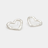 Boucles d'oreilles clous coeur en argent. Bijoux raffinés fabriqués à la main à Montréal, Canada.