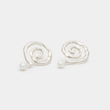 Boucles d'oreilles en spirale en argent et perles d'eau douce. Bijoux raffinés fabriqués à la main à Montréal, Canada.