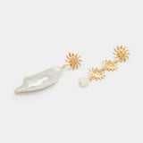 Nos boucles d'oreilles en perles baroques Solana dépareillées sont la touche de modernité parfaite pour une âme ancienne. De minuscules soleils façonnés avec des visages de lionnes sont ornés de perles baroques et keshi de forme naturelle. Cette paire asymétrique s'inspire de la beauté sauvage de la nature et des textures brutes et imparfaites, célébrant la perfection unique des formes organiques et de l'artisanat. Vendu par paire.
