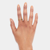 Les bagues empilables de notre collection Temple du Soleil. Ce combo minimaliste consiste de ces trois bagues suivantes: deux Bagues Cléo Coulée à Diamant et une Bague Cléo Simple à Diamant.