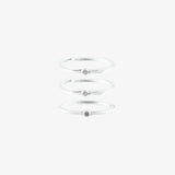 Les bagues empilables de notre collection Temple du Soleil. Ce combo minimaliste consiste de ces trois bagues suivantes: deux Bagues Cléo Coulée à Diamant et une Bague Cléo Simple à Diamant.