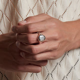 Pas besoin de pierre précieuse avec notre Bague Chevalière en Diamant! Son design épuré en fait un accessoire qui attire l'attention et suscite les conversations.